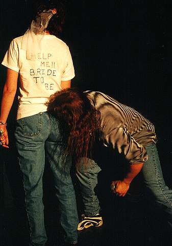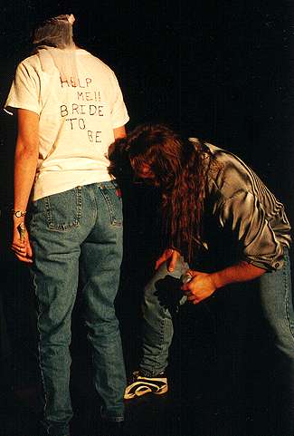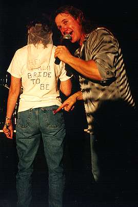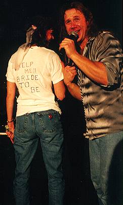 Bride-to-Be Sheila was in the spotlight wearing a "Suck For A Buck" shirt as John carefully got his dollar's worth.