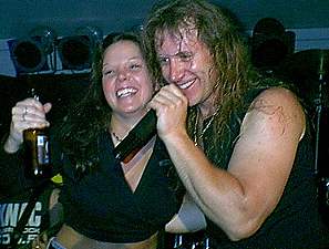 Dawn Farris struts her stuff on stage where she also gets a Cherry Pie tattoo applied to her stomach with John's help and with some moisture from Serena Rehak.
