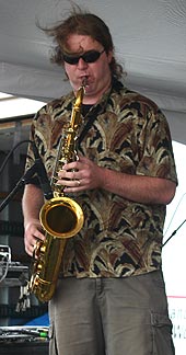 Stage Manager Mike was invited on stage to play some harmonica with the band. |